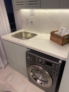 Em residências brasileiras, e muito claramente em apartamentos, esses espaços concentram atividades intensas: preparo de alimentos, higienização, cuidados pessoais, lavagem de roupas. Quanto maior o fluxo, mais importante é que o ambiente seja simples de manter organizado e limpo, sem exigir esforço excessivo.